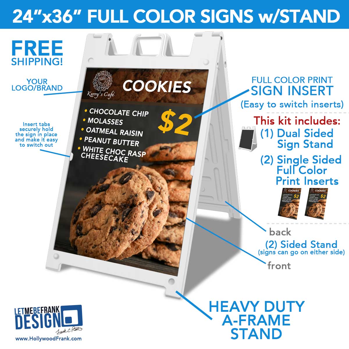 LARGE OUTDOOR 24"x36" (2) Full Color Printed Signs w/STAND